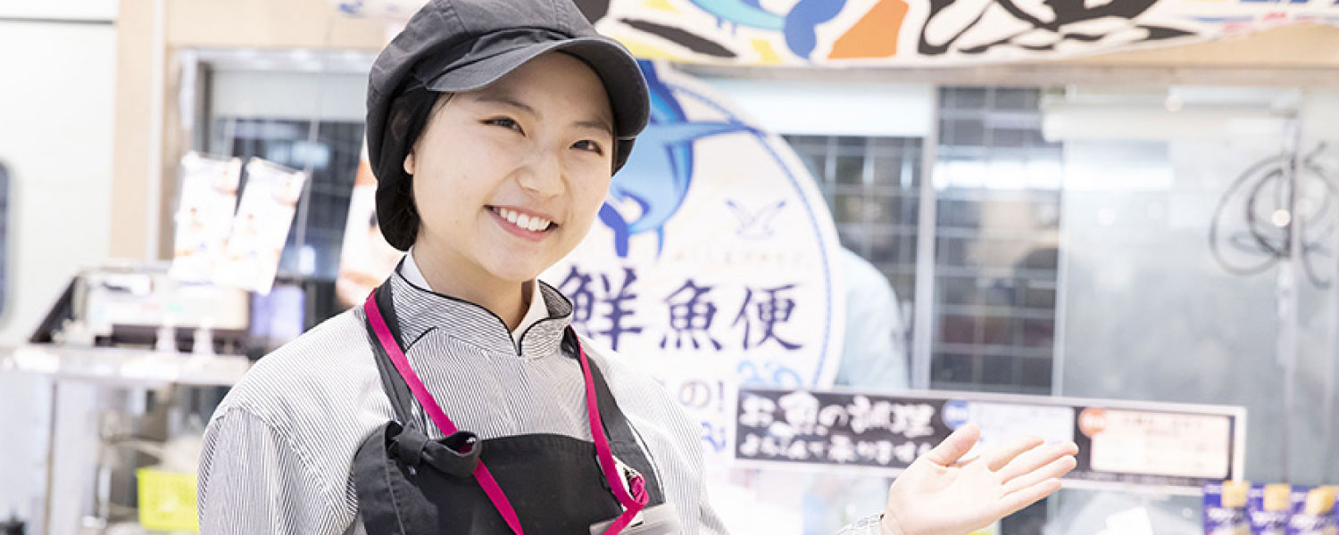 1日4時間~の勤務です。食品レジやサービスカウンター、化粧品・衣料品売場など人と接するお仕事からお魚・惣菜売場での調理・加工のお仕事、お野菜・日配食品などの食品売場での商品の品出し・陳列ネットスーパーのお仕事もあります。