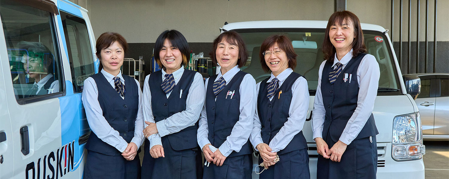 あをきやは、ダスキンダストコントロール事業・ダスキンケアサービス事業及びミスタードーナツショップの運営に従事しています。