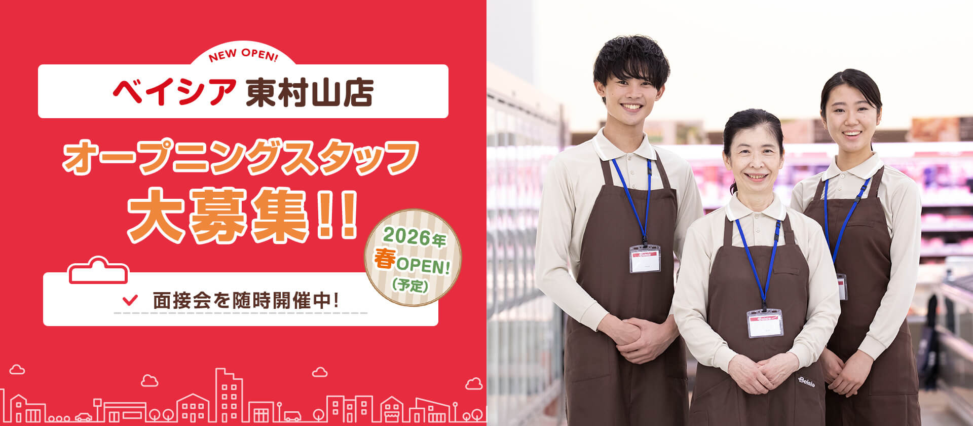 ベイシア東村山店では共に働いてくれるスタッフを募集しています。