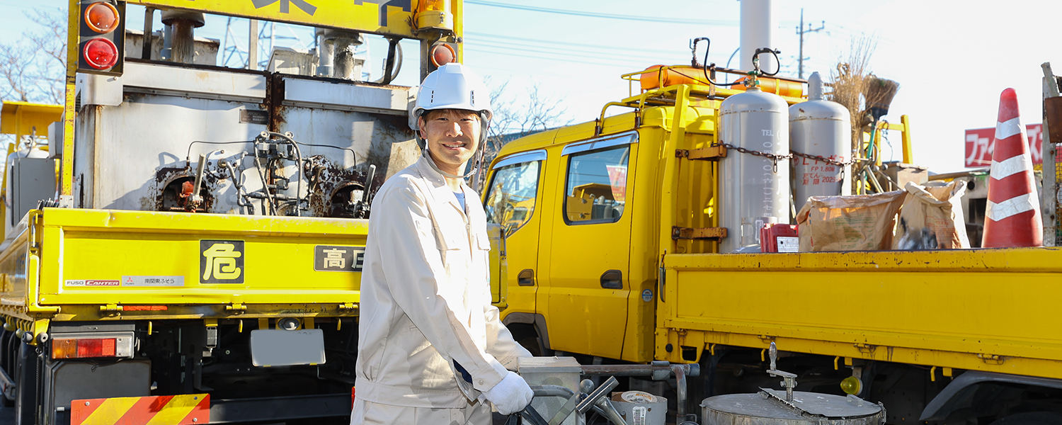 この仕事の醍醐味は営業・現場作業スタッフ全員で協力し、工事を完成に導いていくところ。そして、当社の魅力は、自分たちで手がけた成果をみんなで喜べる温かい風土です。
