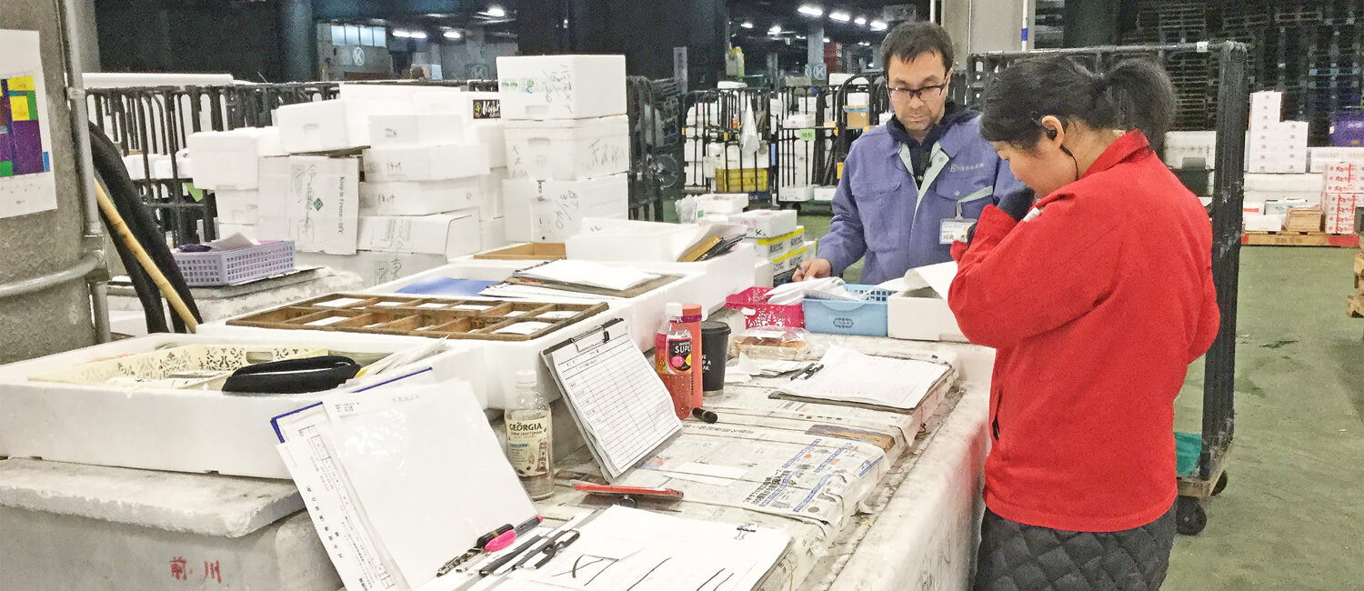 大正13年、錦市場で水産物卸として誕生した河市水産。昭和2年に日本初の卸売市場である『京都市中央市場』が開設すると、鮮魚仲卸業者として参入し、京都および近府県の小売店や飲食店に新鮮な魚介類を提供してきました。近年当社が力を入れているのが、働きやすい環境づくり。柔軟な勤務時間の実現や設備の充実をはかり、性別・年齢に関係なく活躍できる環境を整えてきました。その結果、「男性社会」「ハードな仕事」というイメージの強い業界にあって、『きょうと男女共同参画推進宣言 市長賞』『高齢者雇用開発コンテスト 努力賞』を受賞させていただきました。私たちの基本姿勢は「誠意をつくして信頼を得る」。お客様と消費者様、そして社会にとって良きパートナーでいられるよう努めてきました。これからも旬な魚を適正価格でご提供することで、魚食の普及と健康増進に貢献するほか、従業員にとっても働きやすい優良企業であり続けます。