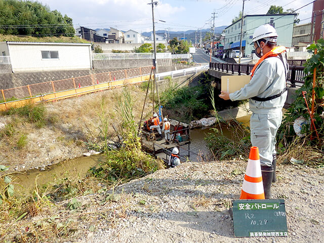 地盤調査の技術者は対象地の地形・地質を調査し把握することで、目的に沿った地盤の工学的特性や問題点を明らかにし、解決策を提案する職種です。調査結果はその後の設計・施工にとって必須の基礎データとなるので、非常にやりがいがあります。