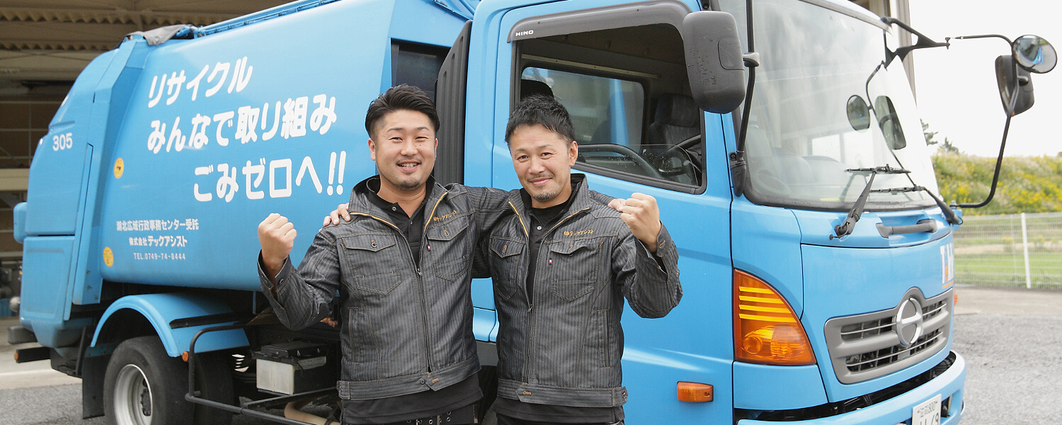 設立から50年以上にわたり、官公庁から業務を受託している『株式会社テックアシスト』。現在は、生活廃棄物の収集・運搬作業を主な事業内容としています。人間が生活している以上、廃棄物は必ず発生します。可燃物だけでなく不燃物やリサイクル品……回収しなければ街の清潔さは損なわれ、たちまち生活が困難になるでしょう。街の景観や公衆衛生を守っているのが、私たちの仕事です。一つひとつの収集場所を回って仕事をするたびに街がキレイになり、やりがいと達成感を実感できます。また、この仕事は生活者がいる限り決してなくなることはありません。景気に左右されることなく、安定的に働くことができます。さらに、就業時間が8時~17時で残業がほとんどないため、プライベートとの両立も可能です。働くたびに街がキレイになり、社会貢献ができる『テックアシスト』で、私たちと一緒に仕事に取り組みませんか。